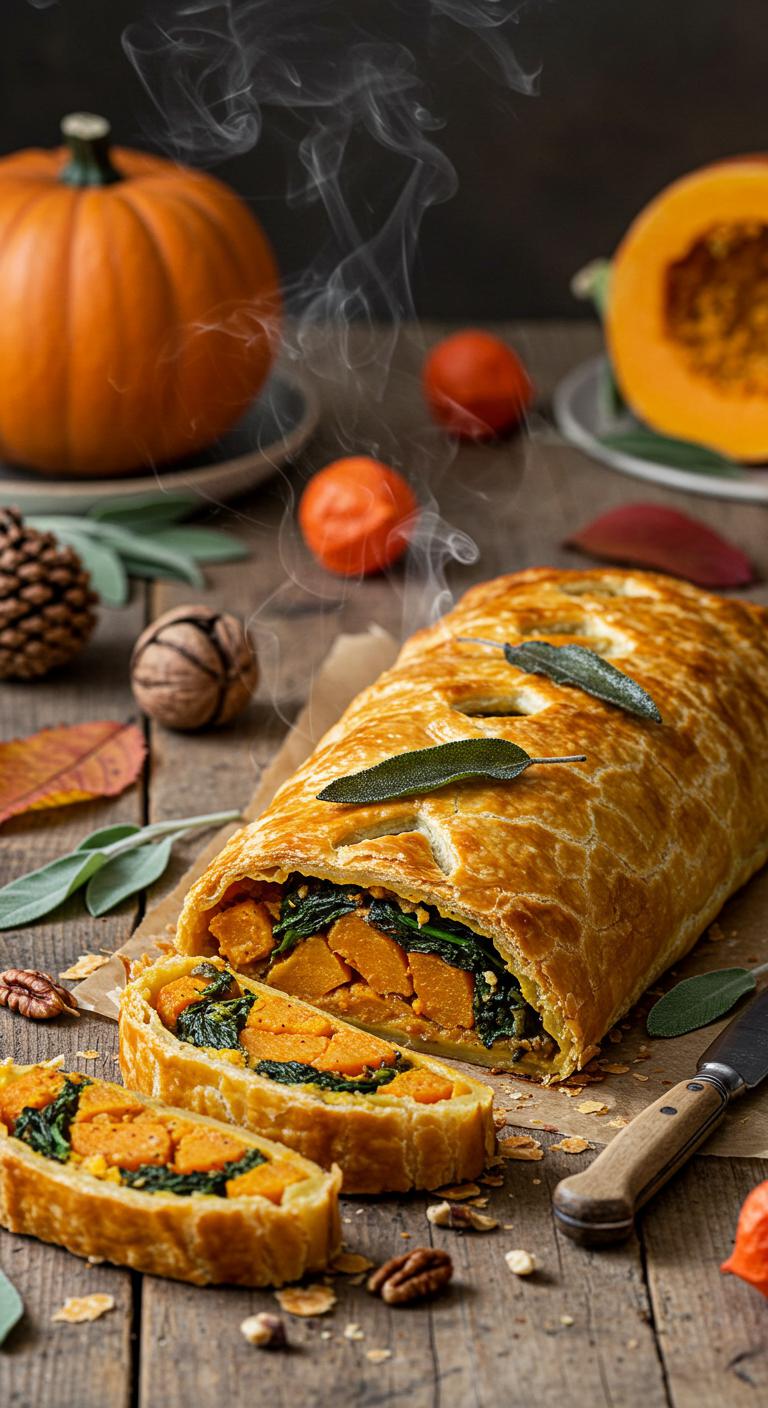 Roasted Butternut Squash and Sage Wellington — a cozy, flaky centerpiece that tastes like fall wrapped in pastry.