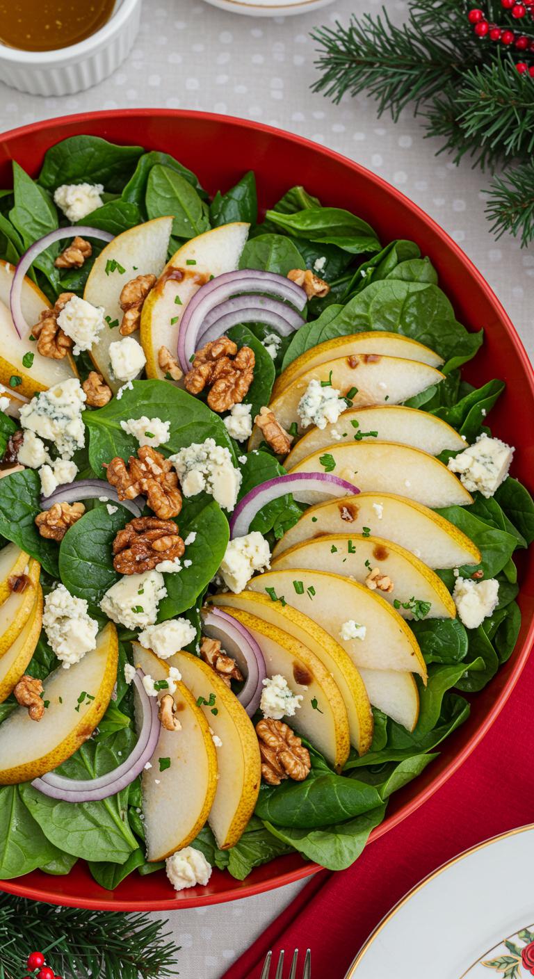 Bright, festive salad that balances sweet pears, tangy Gorgonzola, and crunchy candied walnuts with a honey-balsamic drizzle.