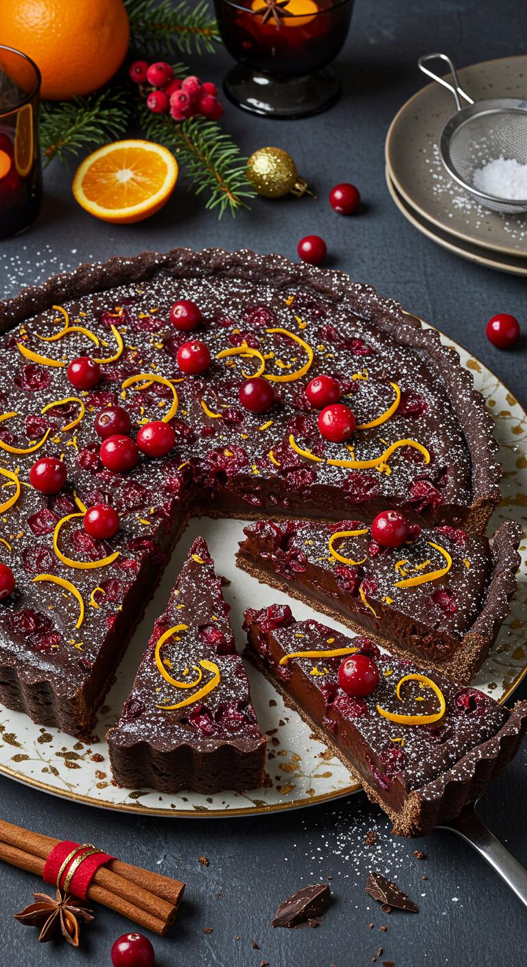 Dark Chocolate Cranberry and Orange Tart