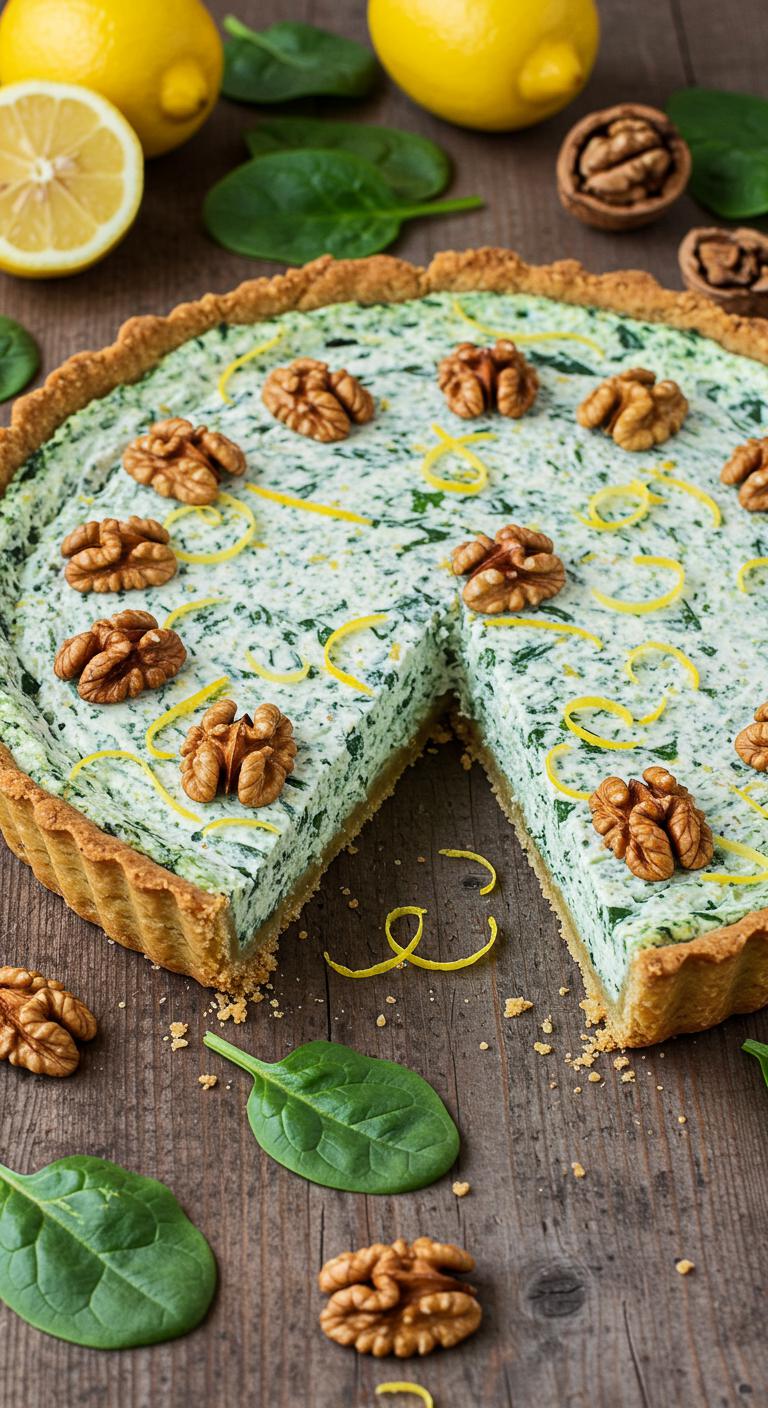 Bright, zesty tart with a crunchy walnut crust and a creamy ricotta-spinach filling.