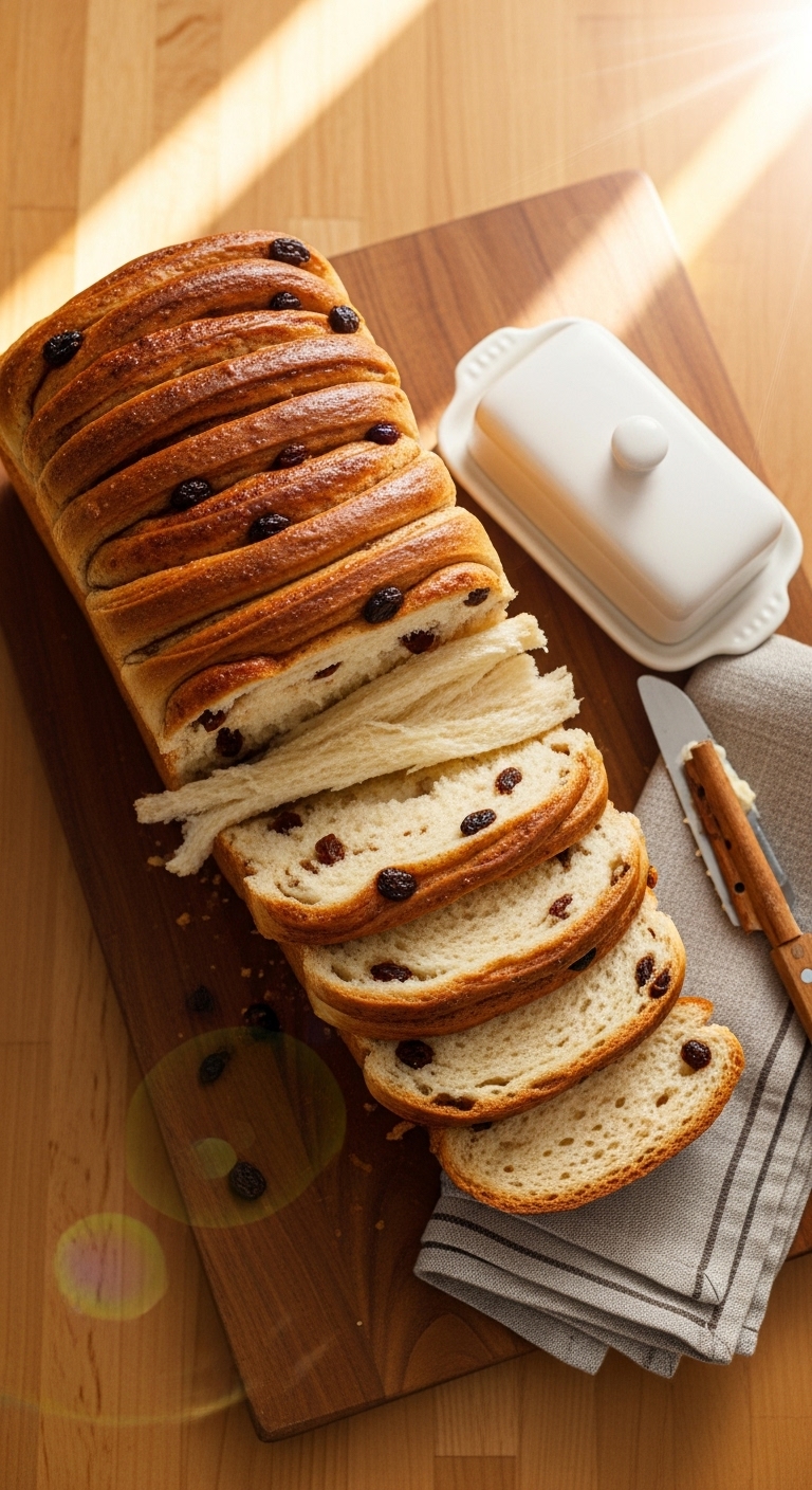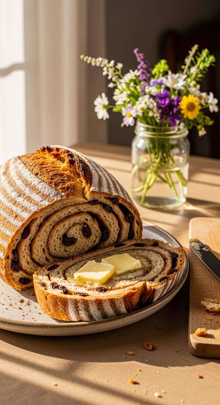 This no-knead version is ideal if you want simple steps and big flavor. Low-effort folding replaces traditional kneading. Cinnamon layers and raisins soften into the crumb for a pillowy mouthfeel. It's perfect for beginner bakers and slow mornings. You’ll smell warm spice and ripe fruit while it bakes.