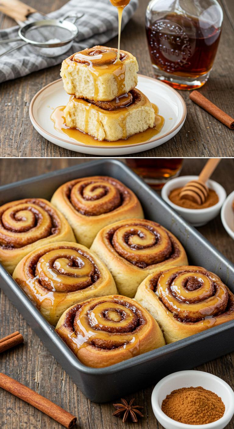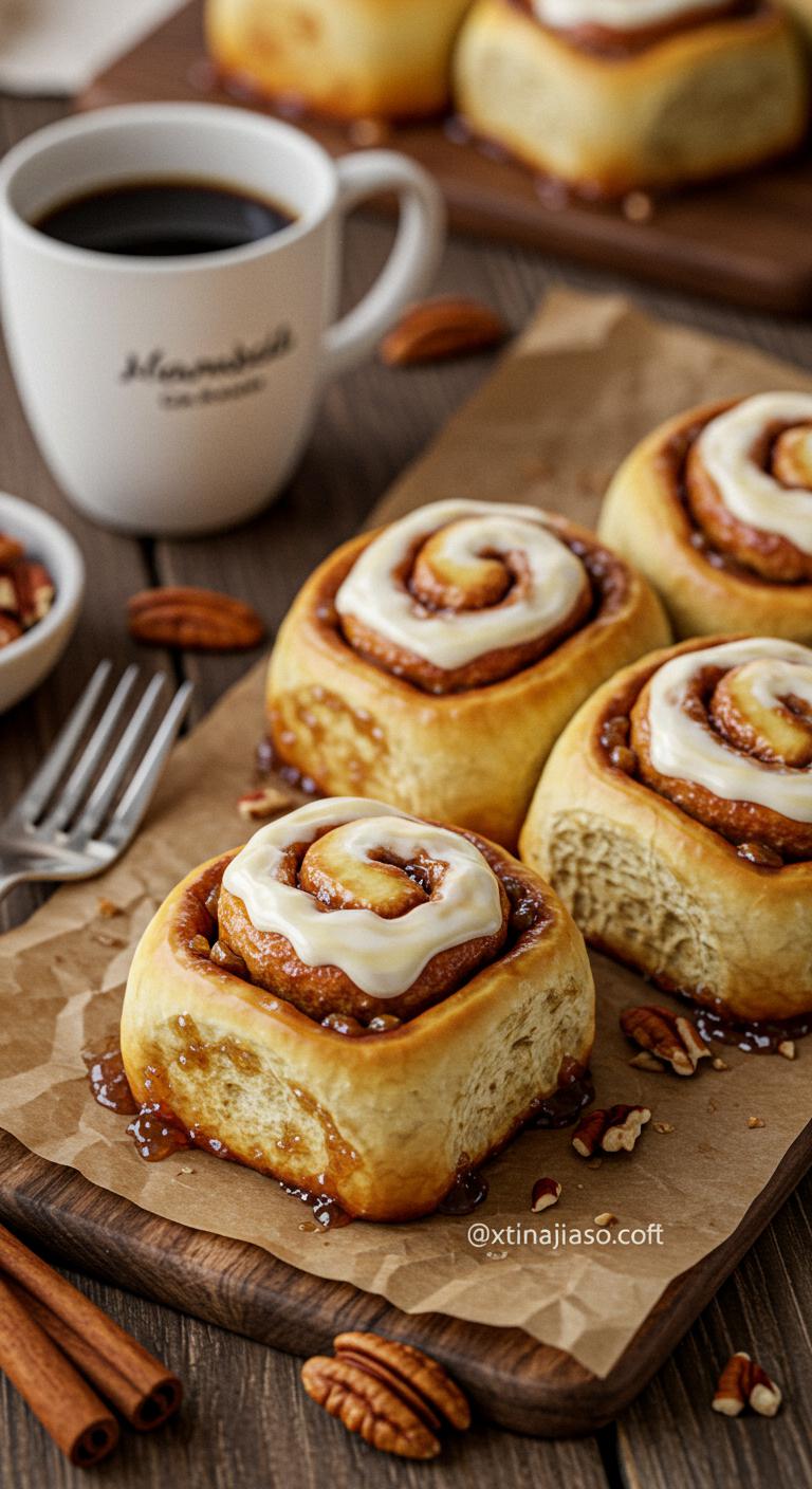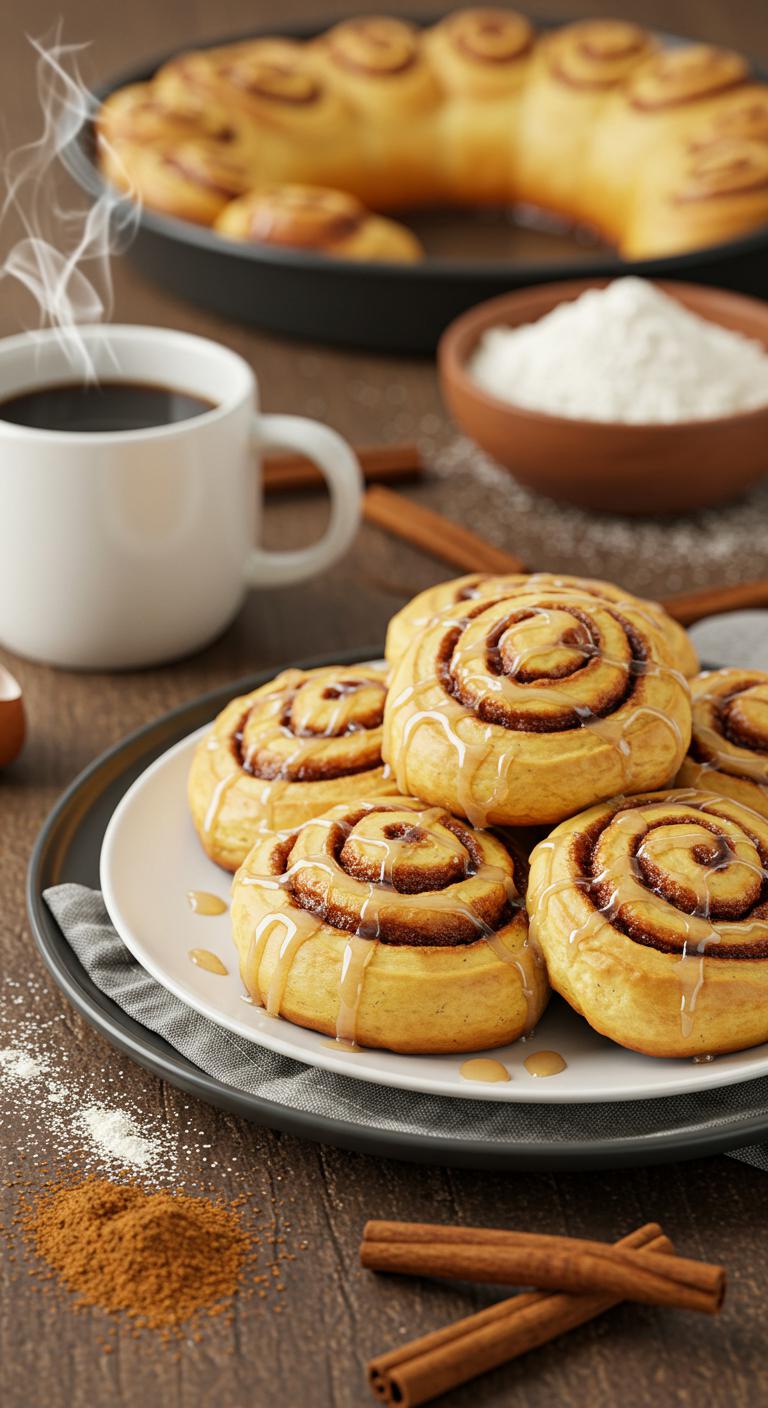 Enjoy these pillowy, sticky cinnamon swirls warm — perfect with coffee and a smile.