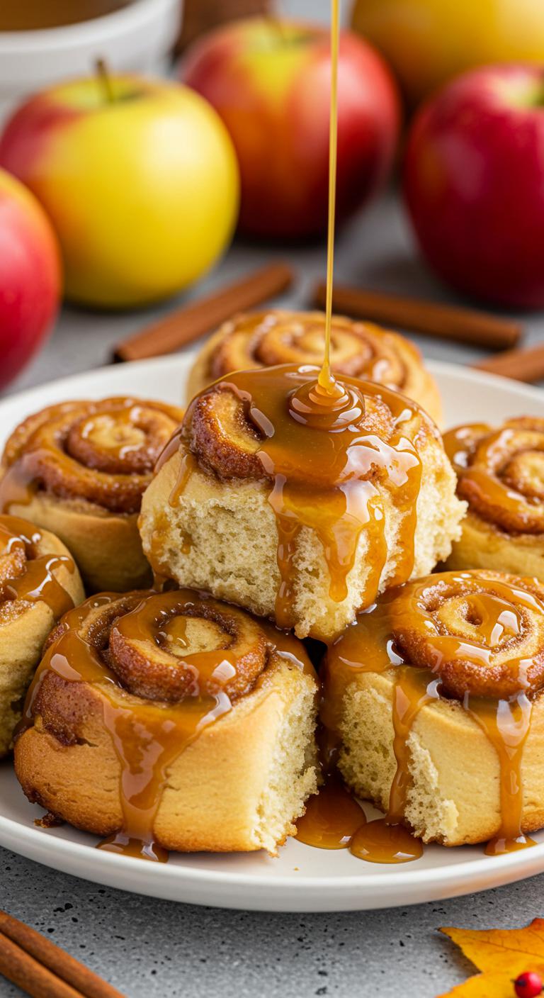 Sweet, gooey apple-cider caramel sticky rolls — fall on a plate.