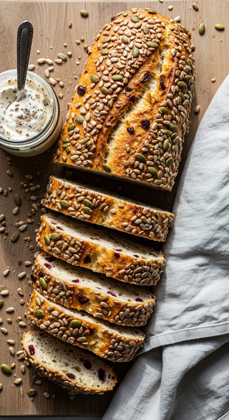 Serve with nut butter and sliced apples for a rustic brunch. Garnish with extra oats and orange zest. Pairs with smoked salmon or cheese boards. Store in a paper bag to keep crust; freeze slices as needed. Great for cozy holiday mornings.
