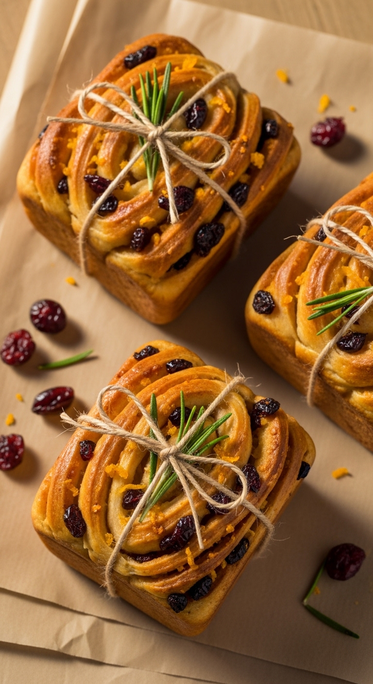 Wrap cooled mini loaves in parchment and twine for gifting. Include a small note suggesting to reheat slightly before serving. Pair with a small jar of orange marmalade or spiced butter. Store in airtight container 2 days; freeze for longer. These are thoughtful, homemade holiday gifts.