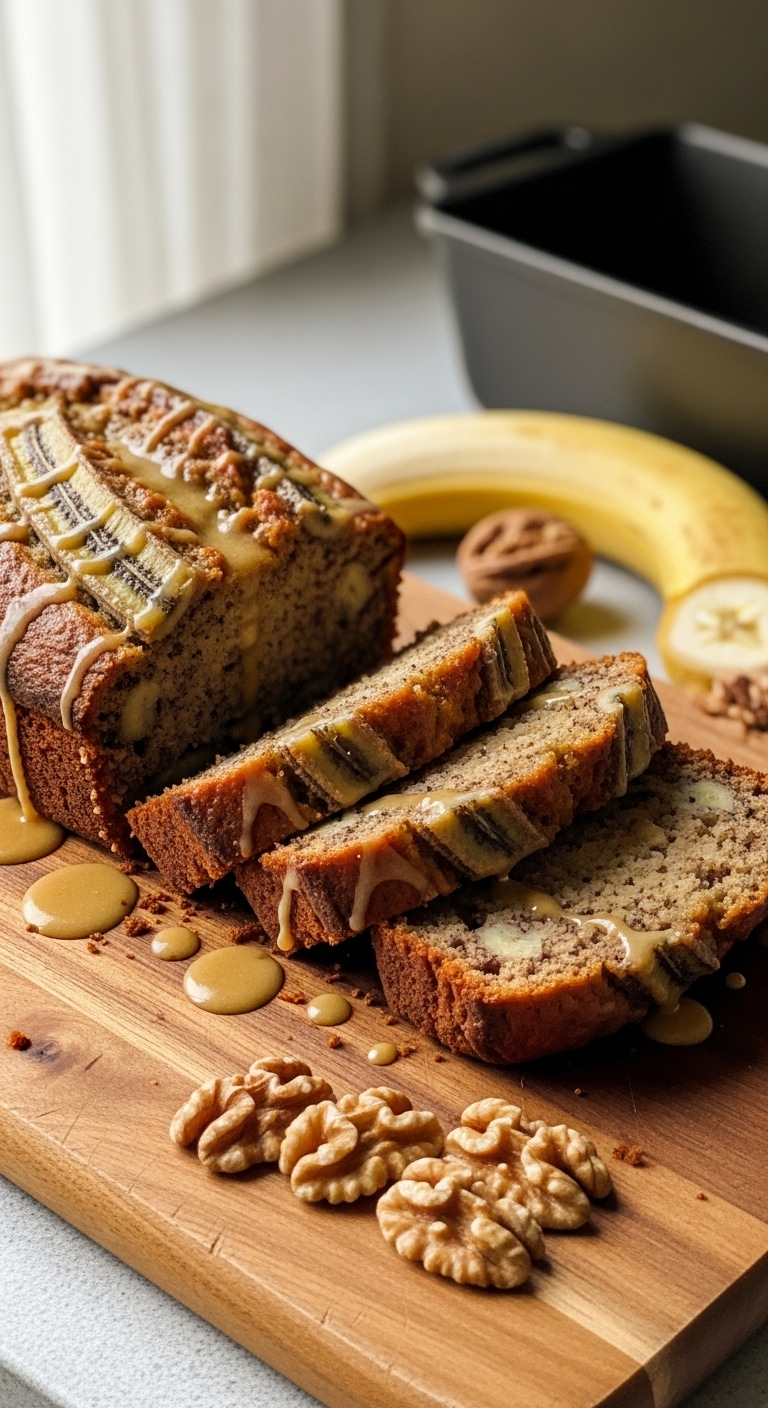 Slice and serve with butter or cream cheese. Top warm slices with sliced bananas and toasted walnuts. Pair with coffee or a milky tea. Store wrapped at room temperature up to 3 days or freeze slices for up to 2 months. Make batter ahead and bake in the morning for fresh loaf.