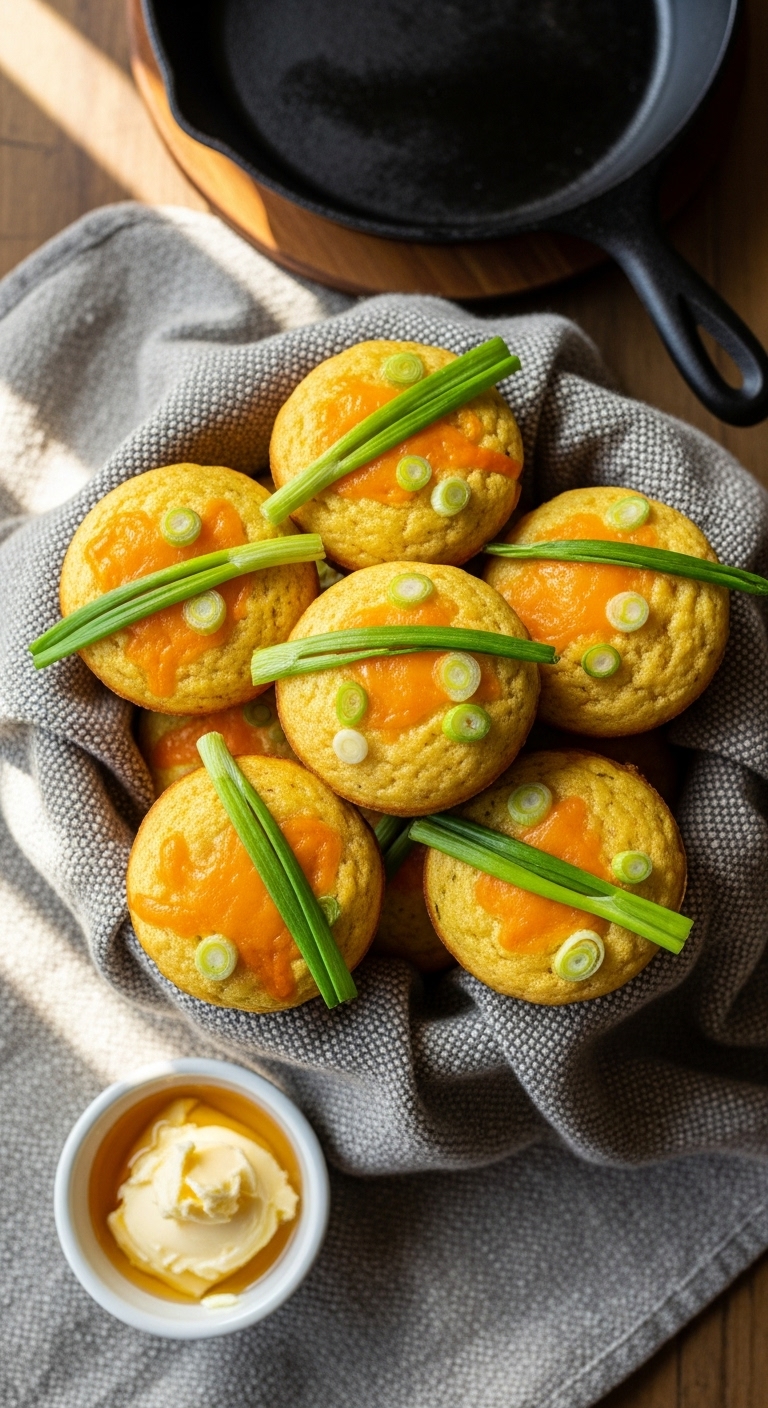 Split and serve with honey butter or chili. Pair with soup, pulled pork, or roasted vegetables. Store in an airtight container up to 2 days; reheat in the oven for fresh crust. Batter can be mixed and baked the same day for best rise.