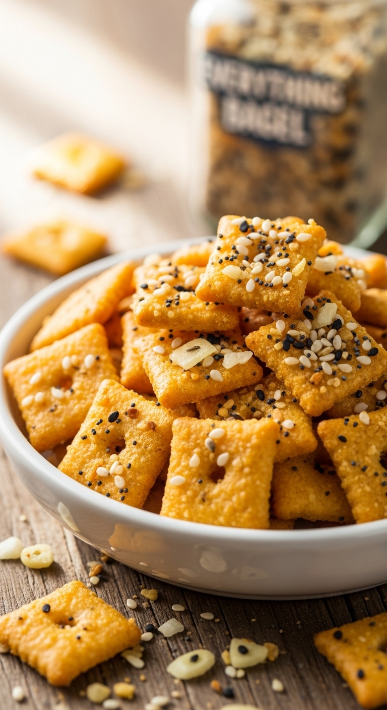 Everything bagel seasoning turns sourdough Cheez-Its into a savory, crunchy snack with multi-layered texture. You get sesame crunch, onion bits, and a salty pop.