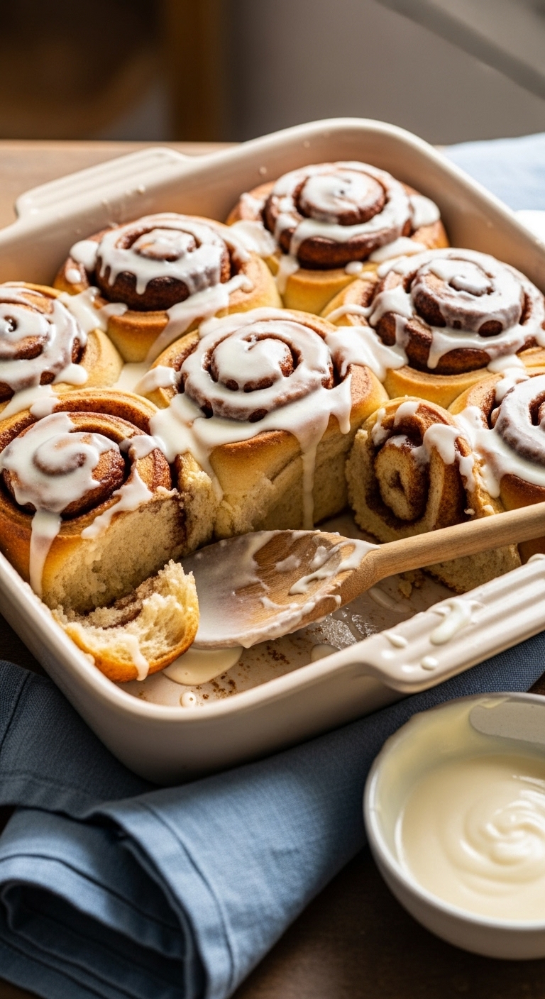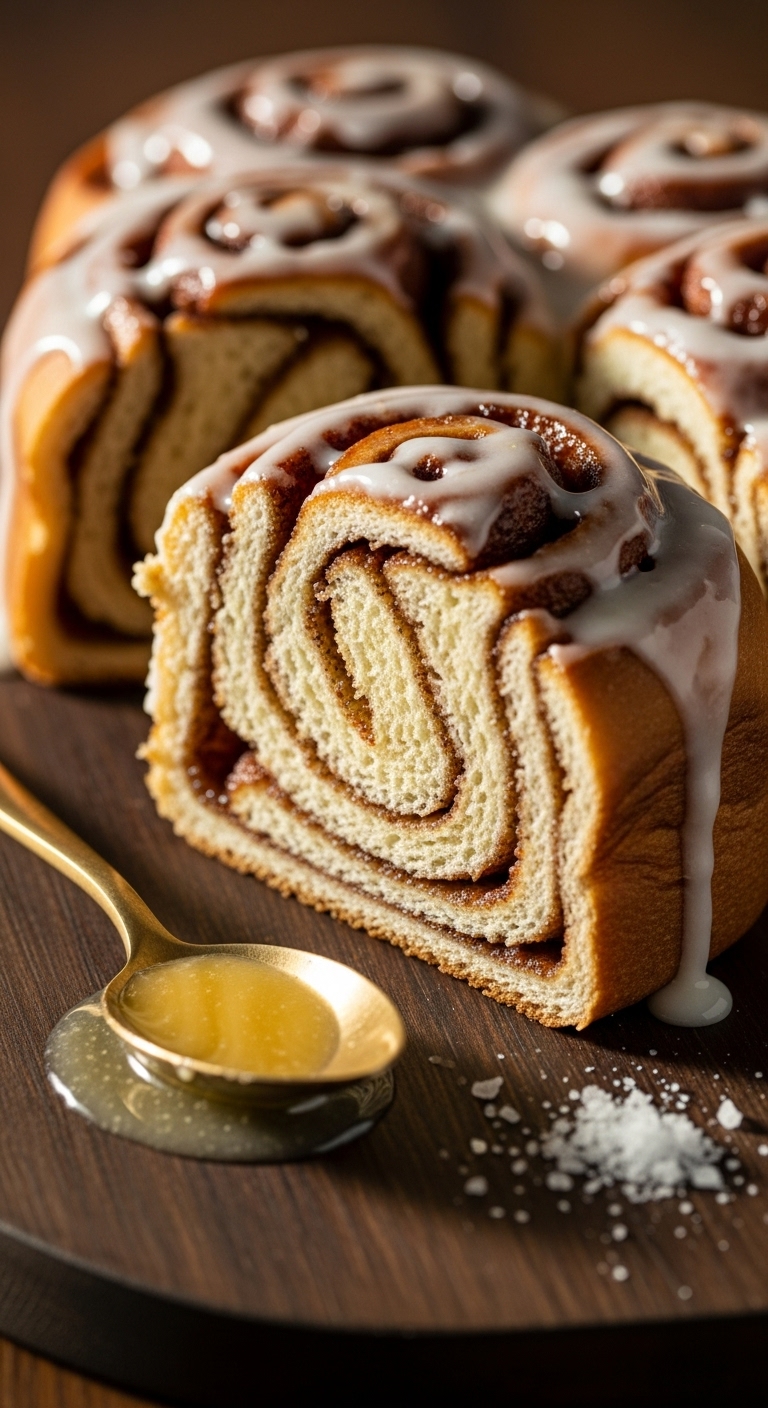 Serve warm on a large ceramic platter. Drizzle extra glaze and sprinkle flaky sea salt for contrast. Pair with strong coffee or chai tea. Store leftovers in an airtight container for 2 days at room temperature or 5 days refrigerated. Reheat in a 300°F oven 8–10 minutes. For a make-ahead option, shape rolls and refrigerate overnight before proofing and baking.