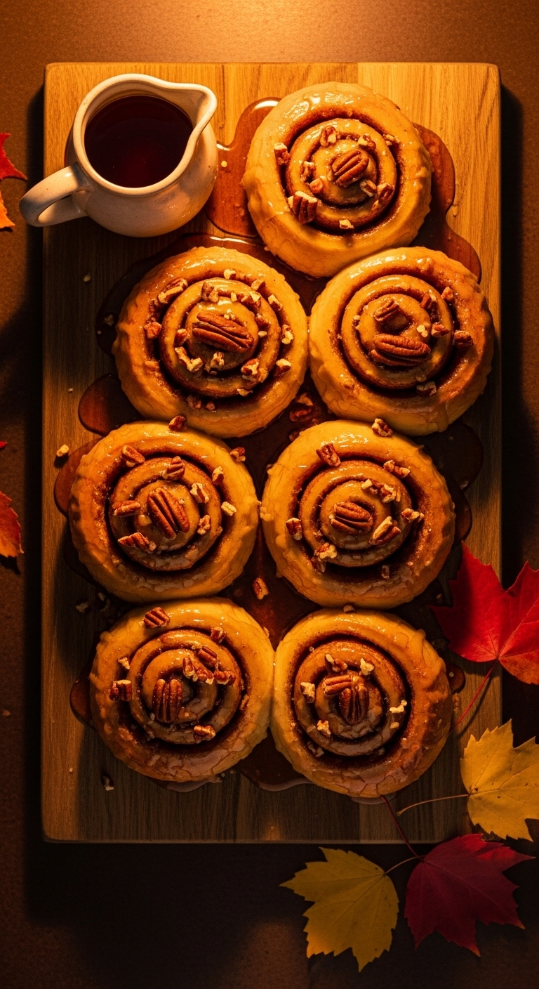 Serve on a wooden board with extra chopped toasted pecans on top. Pair with maple latte or black tea. Store leftover rolls in an airtight container for up to 3 days refrigerated. To make ahead, shape rolls and refrigerate overnight, then bake in the morning. Great for holiday brunch menus.