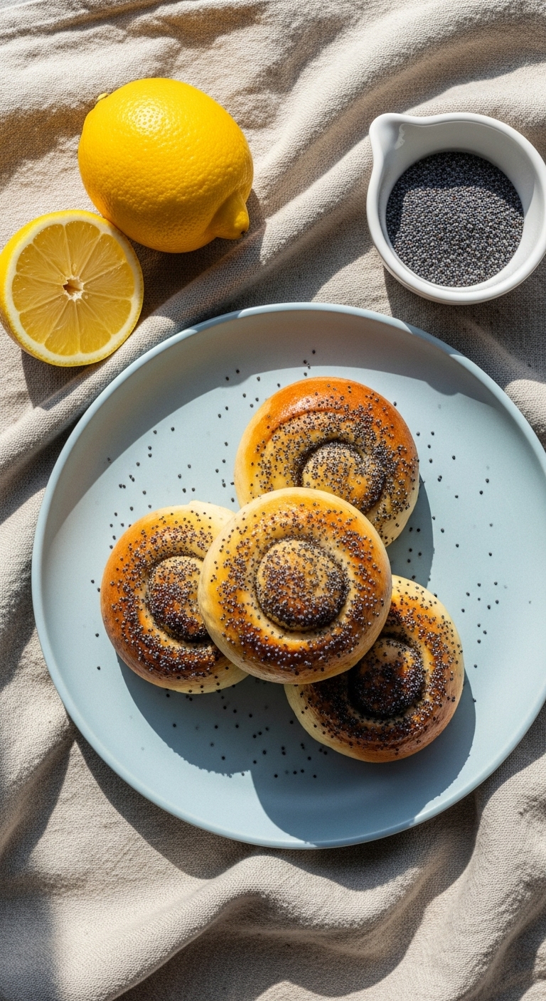 Serve on a bright plate with lemon wedges. Garnish with extra poppy seeds and a light dusting of powdered sugar. Pair with green tea or a citrusy coffee. Store in the fridge for up to 3 days. These rolls are refreshing for spring brunches and showers.