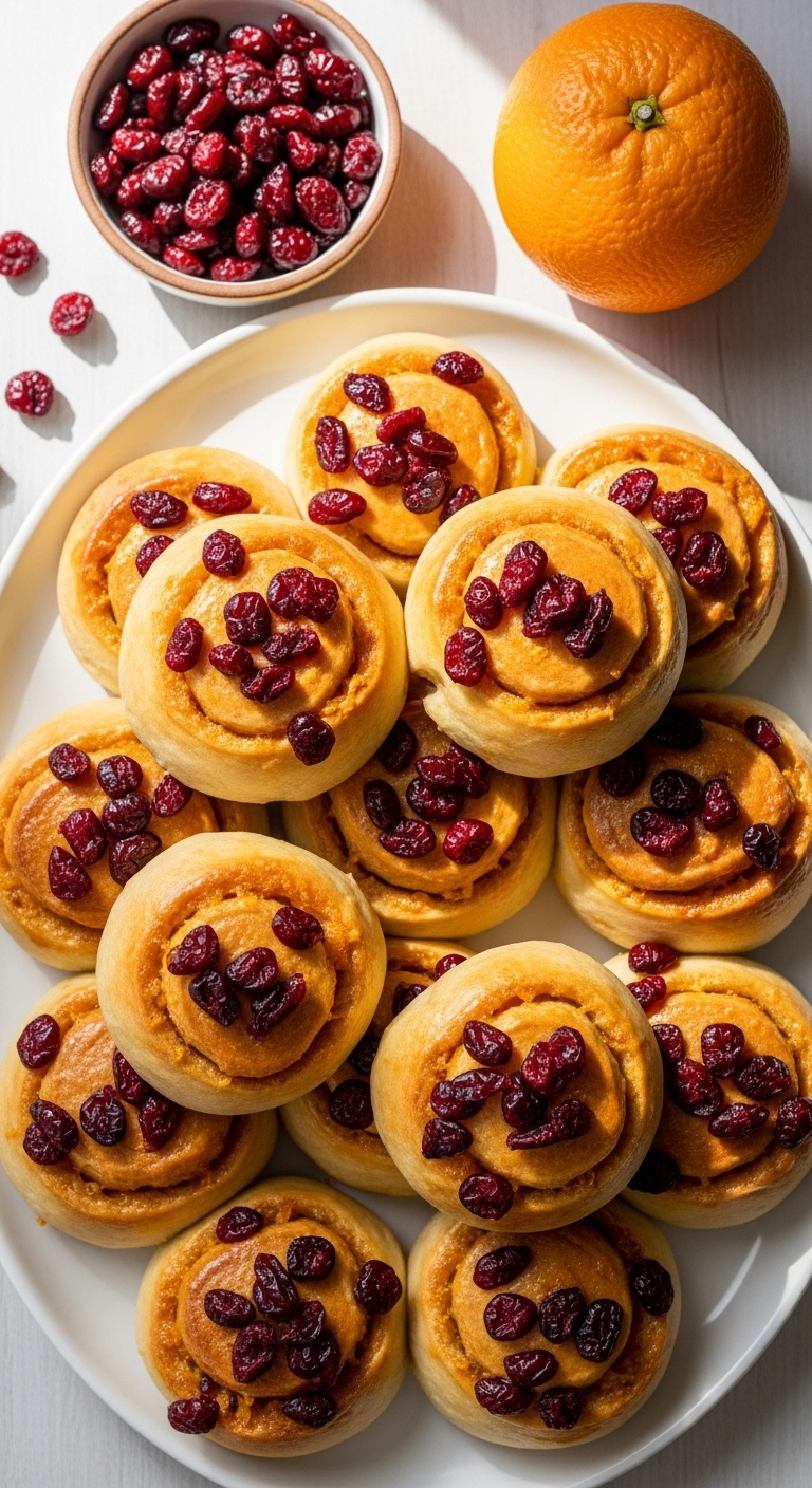 Tart cranberries cut the sweetness and add color. Orange zest keeps things bright. These rolls feel festive and lively. They're ideal for holiday mornings or brunch with friends. Expect a fruity aroma and a pleasing tang.