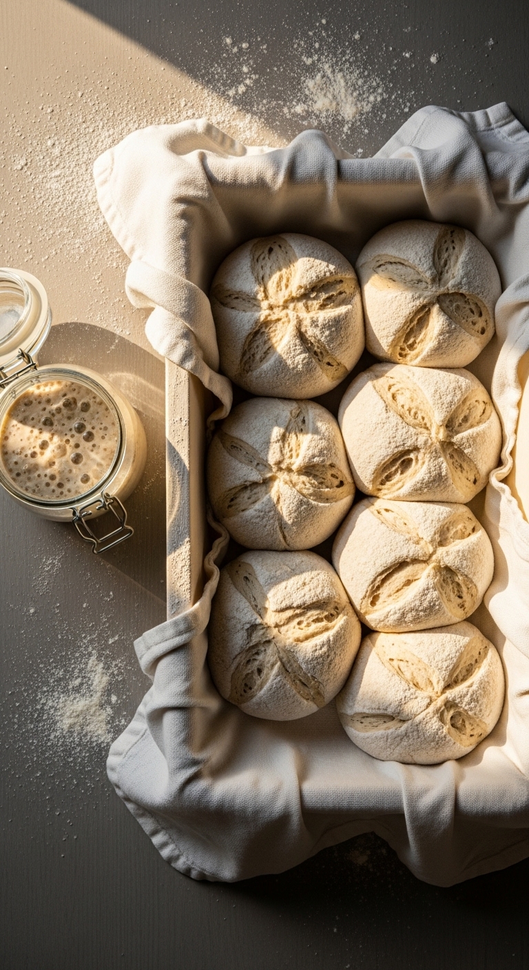 - Bulk ferment 6–8 hours at room temp or overnight in fridge.