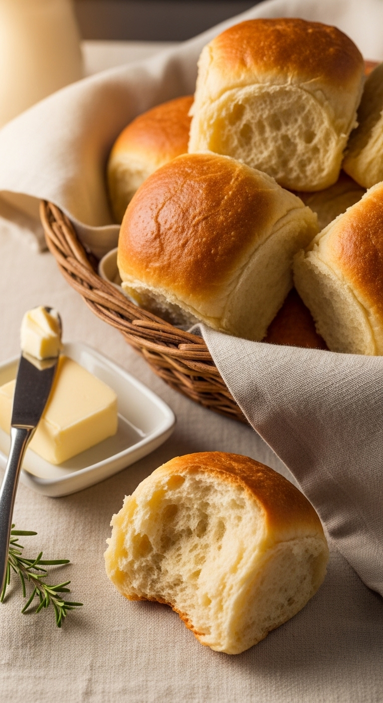 Serve in a basket with compound butter or herb butter. Pair with soups, roasted meats, or a festive spread. Store cooled rolls in an airtight container 2–3 days, or freeze and reheat in the oven. Make ahead by shaping rolls and refrigerating overnight, then bake next day.