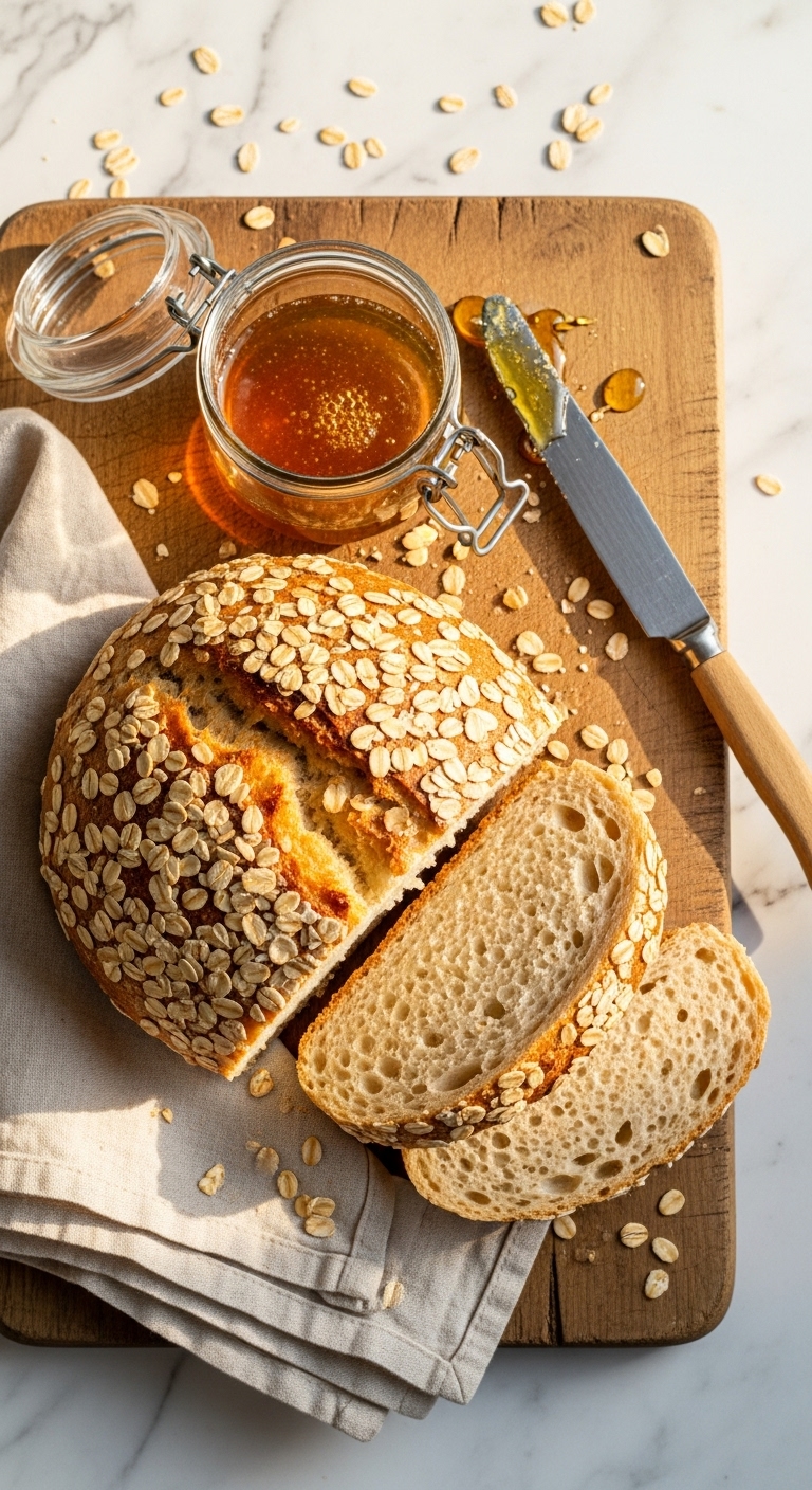 This honey oat sourdough loaf adds sweetness and texture without overpowering. Rolled oats lend chew and a nutty flavor. The crumb stays moist, making it ideal for lunchboxes and peanut butter sandwiches.
