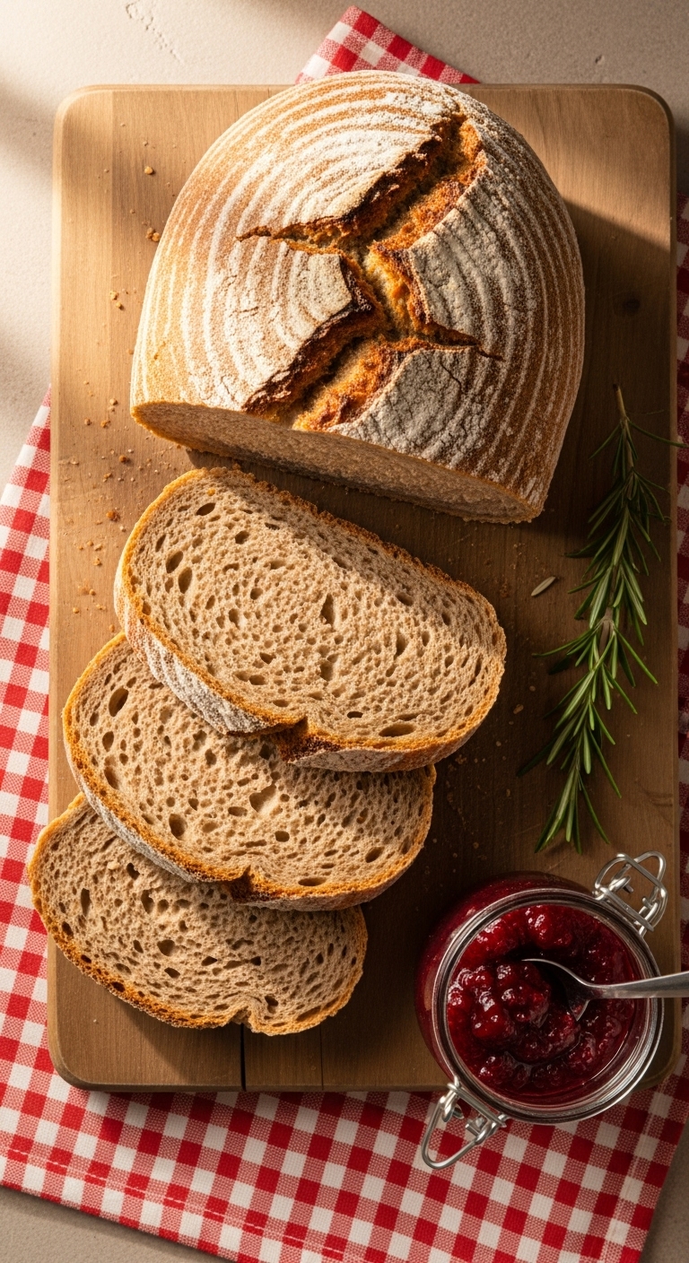 Use for robust sandwiches like roast beef or cheddar and apple. Toasting brings out the nutty aroma. Store wrapped at room temp for 2 days; freeze for longer. Make extra loaves and stash slices in the freezer for quick lunches.
