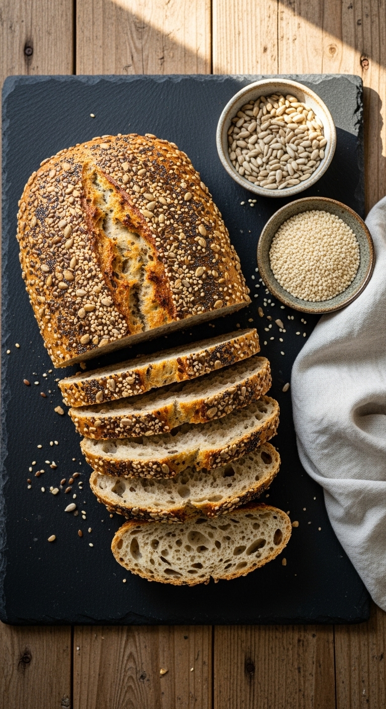 Use for hearty sandwiches like grilled chicken or hummus and roasted veggies. Add microgreens for freshness. Store in an airtight bag for 2–3 days or freeze slices. Make double batches and freeze for weekly lunches.
