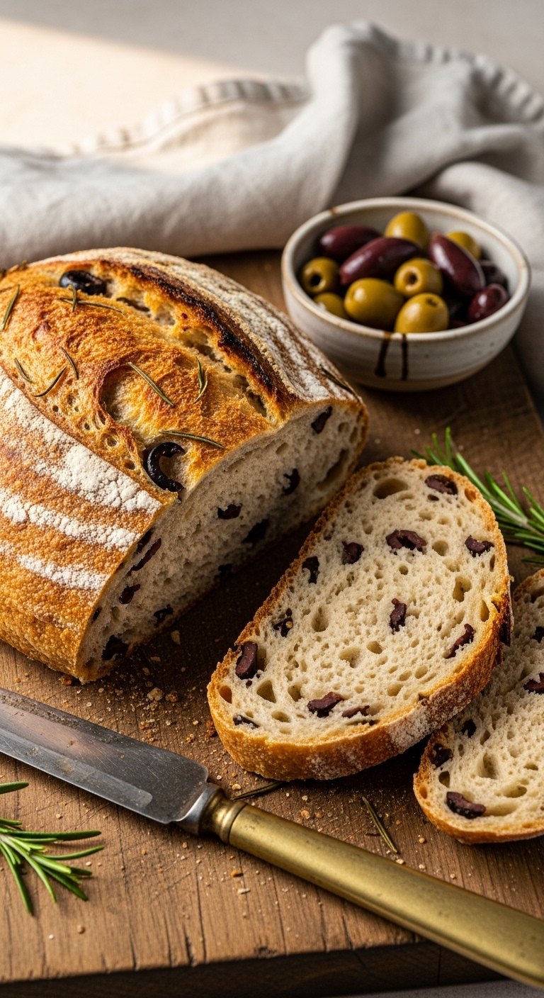 This savory olive and herb loaf adds Mediterranean flavor to everyday sandwiches. Chopped olives and rosemary give bursts of brine and fragrance. The bread pairs beautifully with cheeses and roasted vegetables.