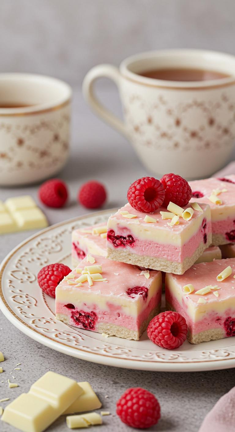 - Optional garnish: fresh raspberries or white chocolate shavings