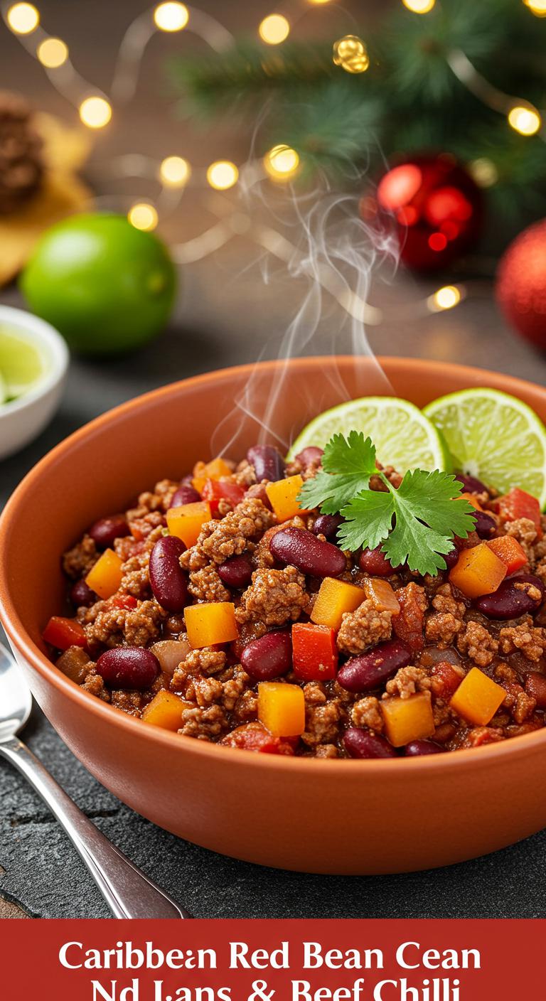Caribbean Red Bean and Beef Chili — a warm, spicy, island‑kissed bowl perfect for cozy holiday nights.