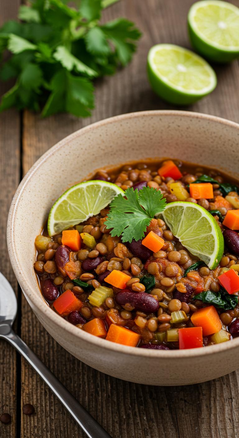 A hearty, cozy Vegetarian Three-Bean Chili that’s warming, simple, and full of flavor for chilly nights.