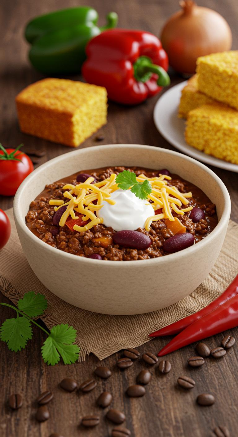 Finish: Serve hot with your favorite toppings and enjoy that smoky, cozy bowl of chili!