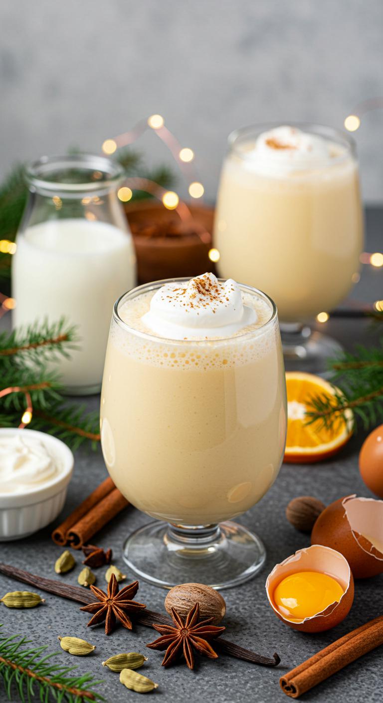 Smooth Vanilla-Cardamom Eggnog Mocktail — cozy, creamy, and lightly spiced for festive sipping.