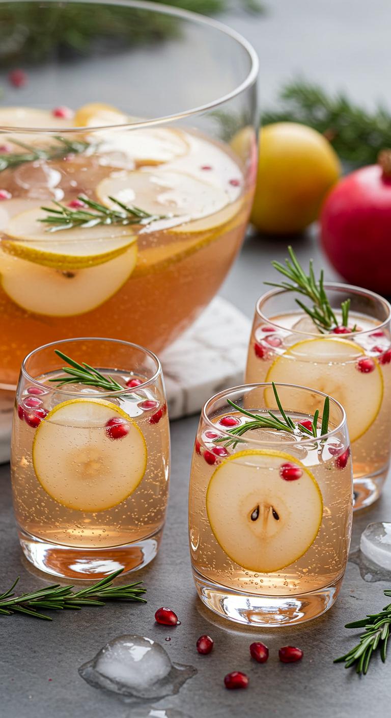 - Garnish with a few pomegranate seeds and a lemon twist or a sprig of rosemary.