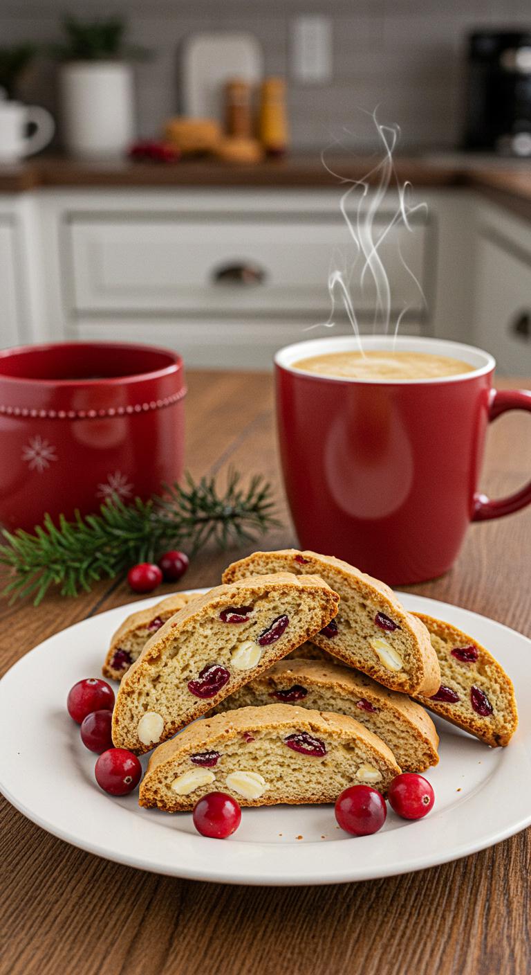 A crisp, festive biscotti studded with tart cranberries and sweet white chocolate—perfect for dunking in coffee or giving as a tasty homemade gift.