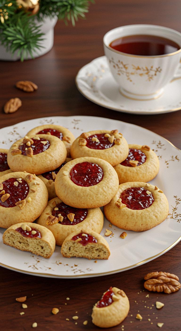 Enjoy these nutty, jam-filled thumbprint cookies with a cup of tea or as a sweet holiday treat!