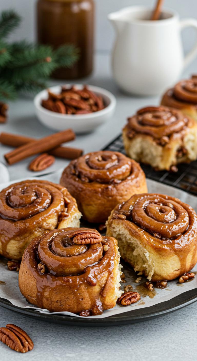 Cinnamon Pecan Sticky Buns — gooey, nutty, and totally egg-free for a cozy holiday treat.