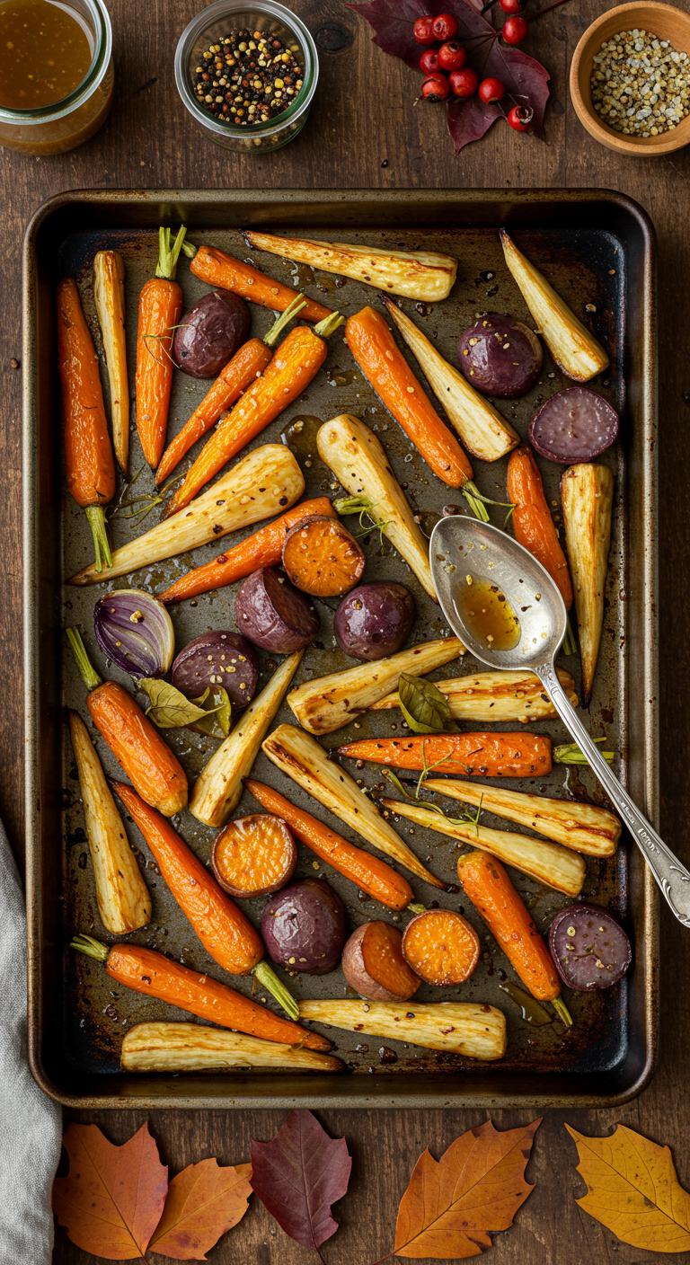 Sweet, savory, and perfectly caramelized — these Maple-Dijon Glazed Roasted Root Vegetables make a cozy, festive side that’s egg-free and full of autumn comfort.
