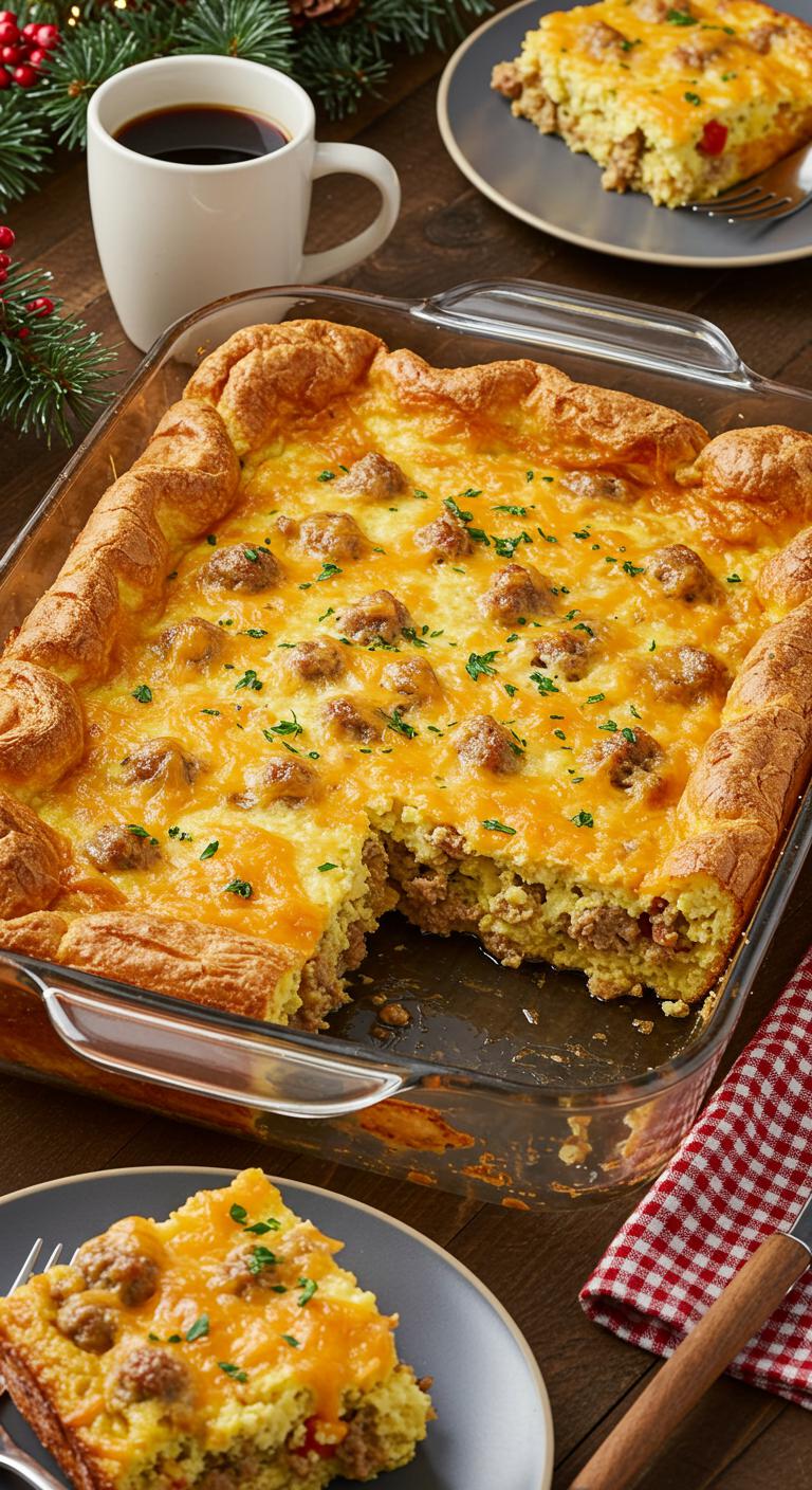 A hearty make-ahead breakfast casserole that reheats perfectly for busy holiday mornings.