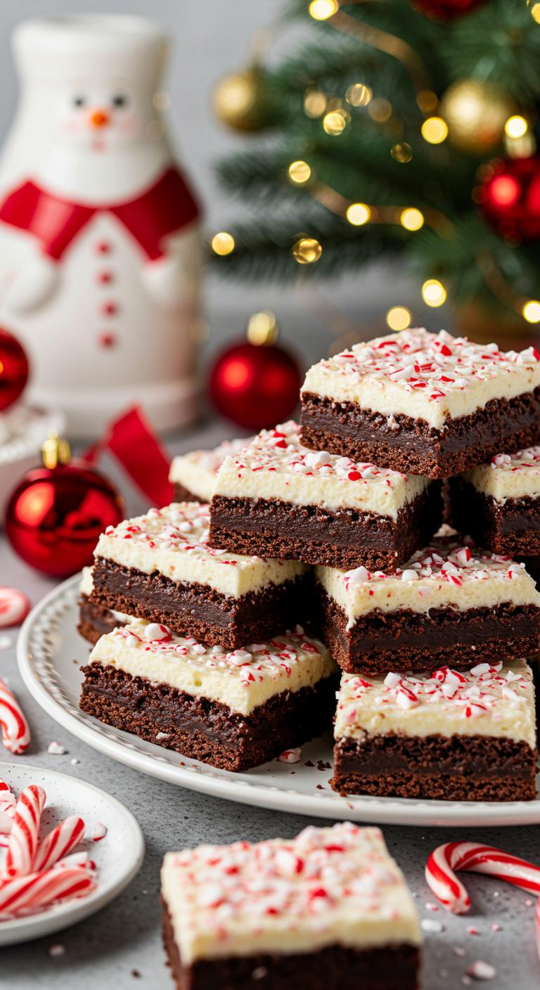 A rich, fudgy brownie bar topped with a creamy peppermint layer and crushed candy canes—perfect for gifting or a holiday freezer stash.