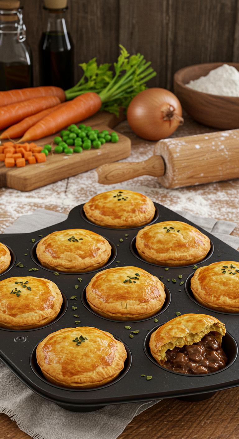 Savory, comforting mini beef pot pies — perfect for making ahead and popping from the freezer to oven when you need a cozy meal.