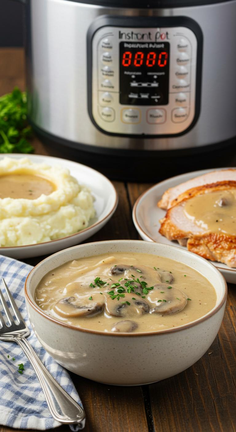 Creamy, savory mushroom gravy that comes together fast in the Instant Pot — perfect for mashed potatoes, turkey, or biscuits.