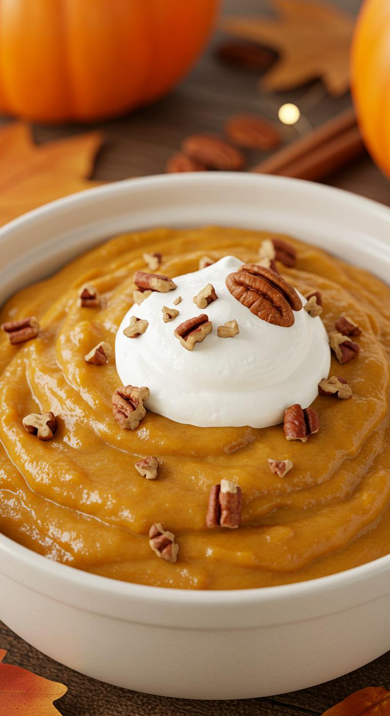 Enjoy spooning up this silky pumpkin spice pudding—comfort in every bite!
