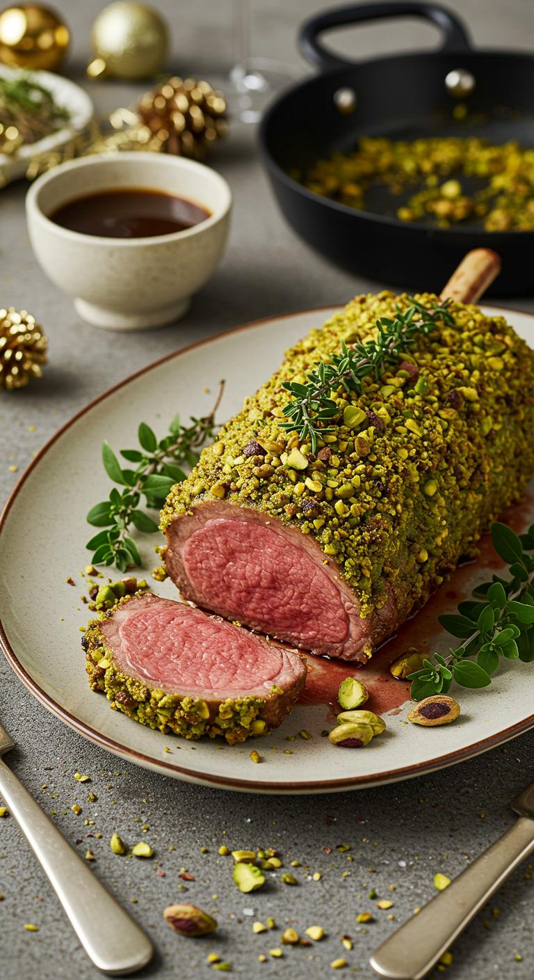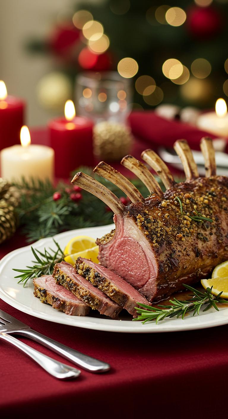 Enjoy a slice of this aromatic, herb-crusted lamb — it’s festive, flavorful, and sure to please the crowd!