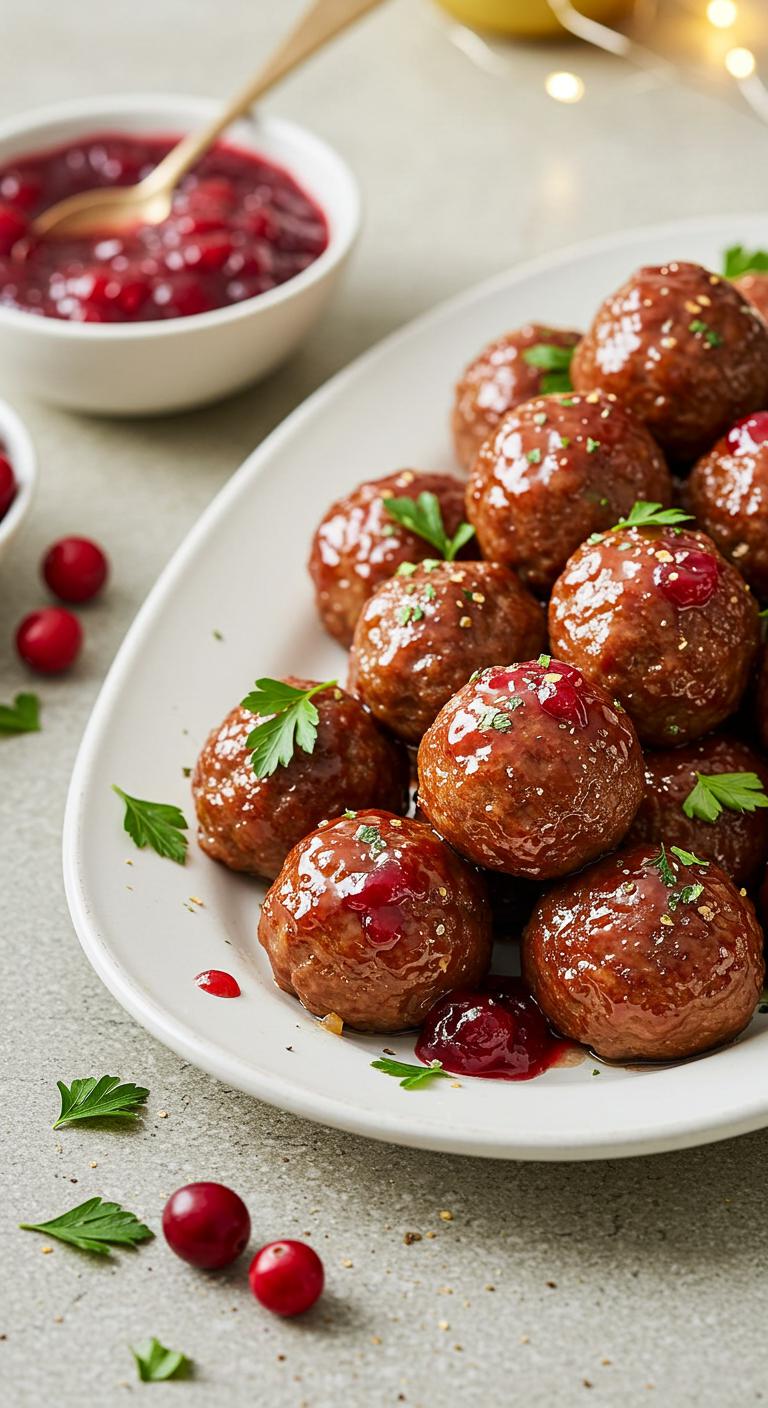 Savory, tender meatballs kissed with tangy-sweet cranberry glaze — perfect for holiday gatherings.