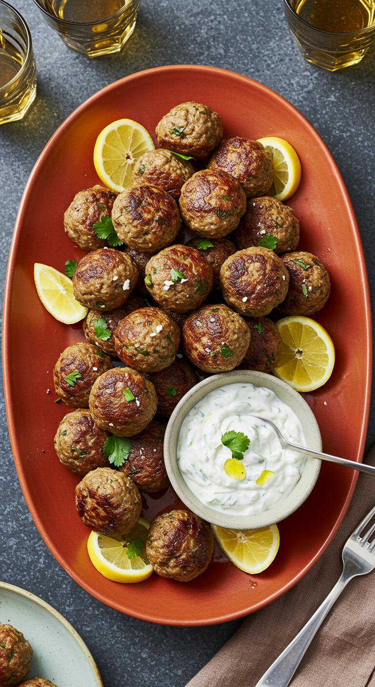 - Serve warm meatballs with a generous dollop of tzatziki and lemon wedges for squeezing.