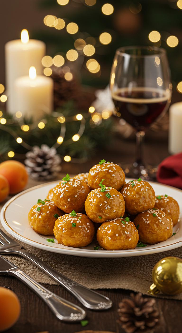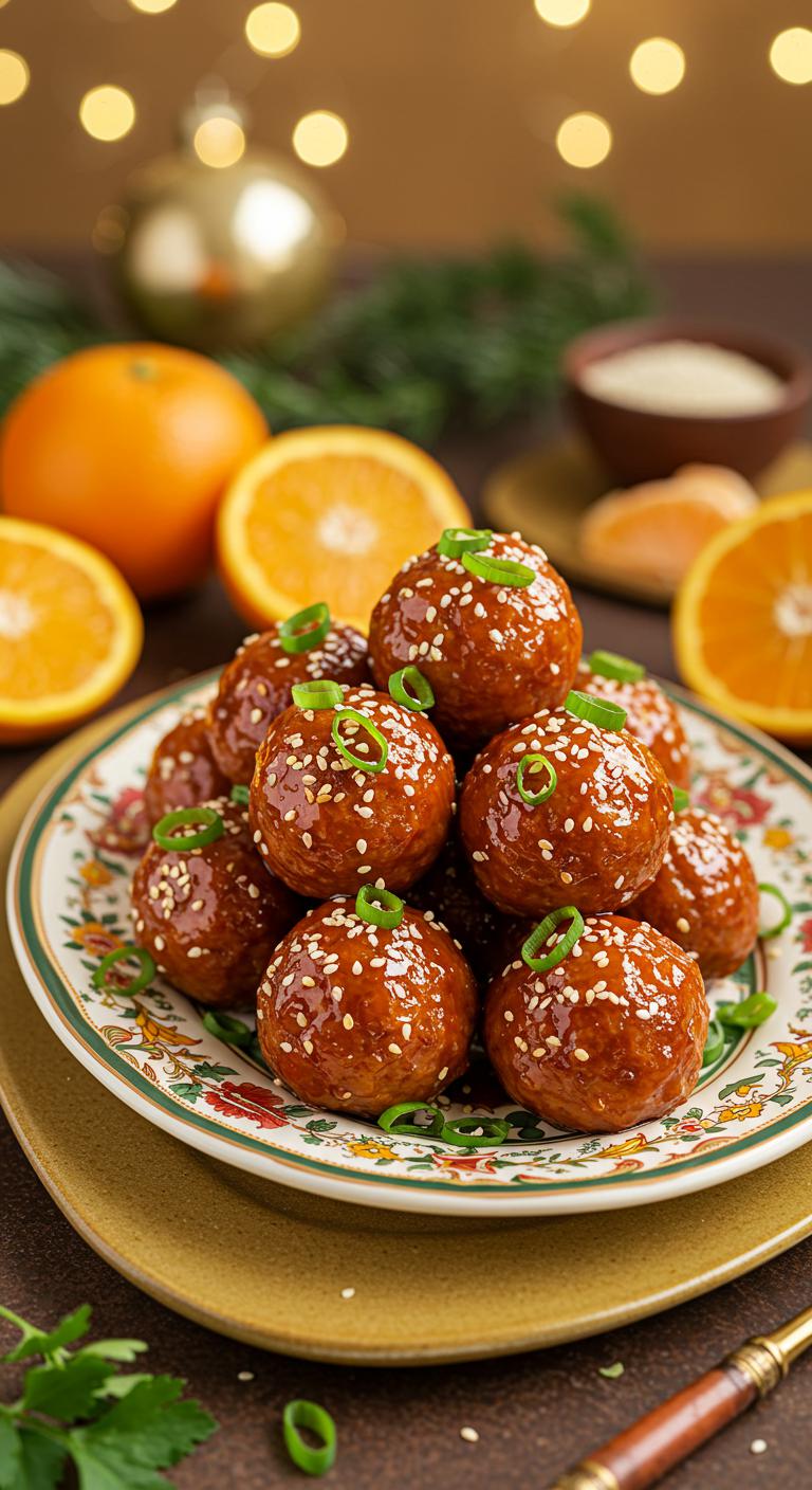Bright, festive orange-glazed duck meatballs — sweet, tangy, and perfect for holiday gatherings.