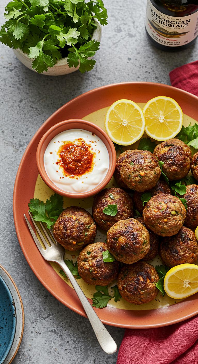 Bright, aromatic lamb meatballs with a spicy-smooth harissa yogurt — perfect for holiday gatherings or cozy nights in.