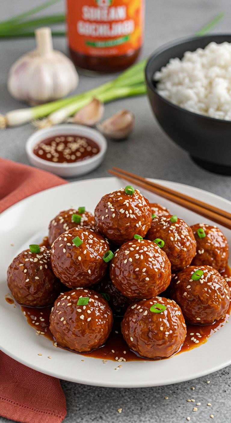 Sweet-and-Spicy Korean Gochujang Meatballs — sticky, savory-meets-sweet bites with a gentle chili kick.