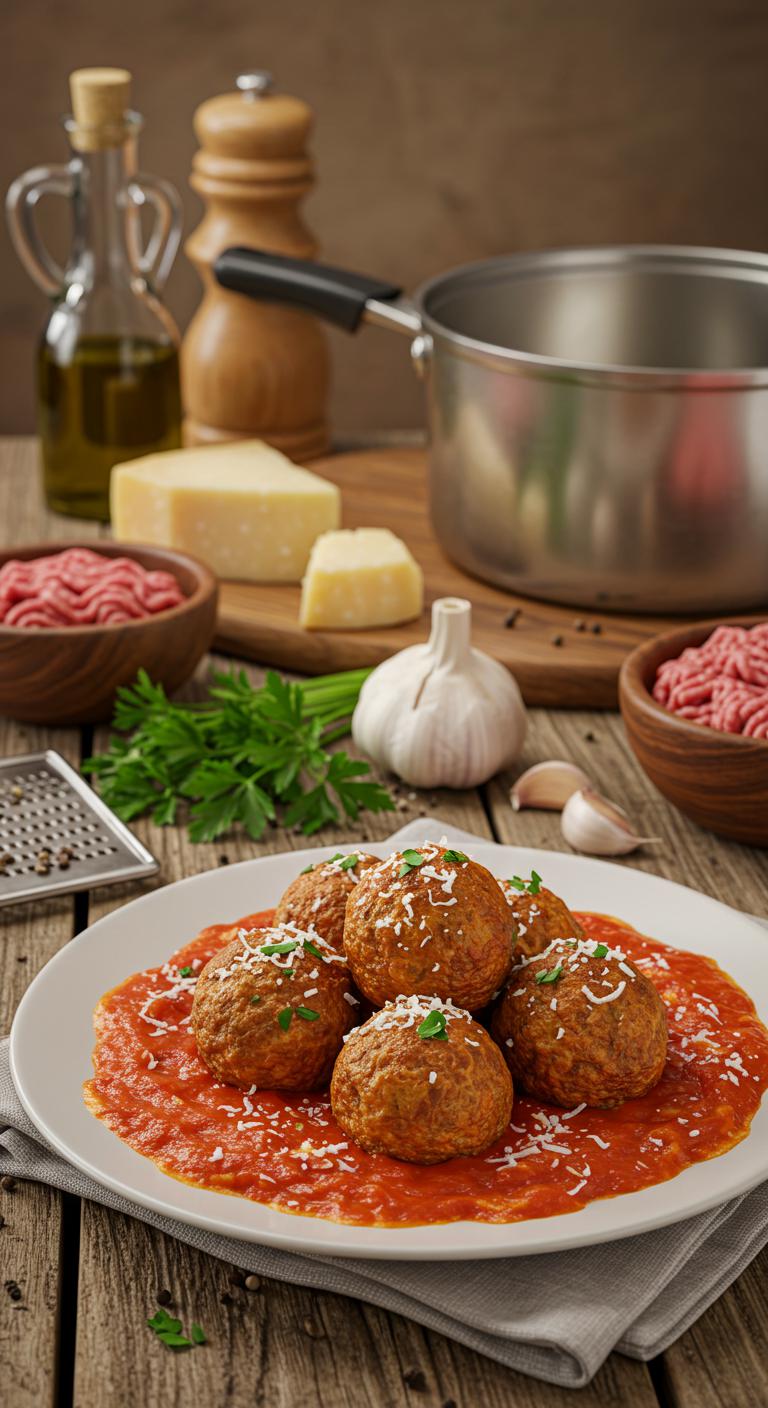 - Heat olive oil in a skillet over medium heat and brown the meatballs 2–3 minutes per side until golden (they will finish cooking in the oven).