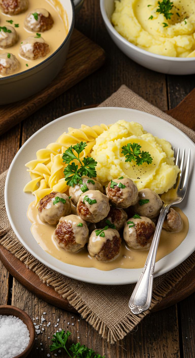6b. To pan-fry: brown meatballs in batches in the hot skillet, turning to brown all sides, then reduce heat to low, cover, and cook 6–8 minutes until cooked through.