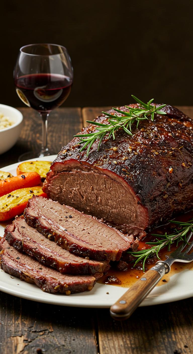 Slow-roasted beef brisket with rosemary — tender, savory, and perfect for a cozy holiday meal.