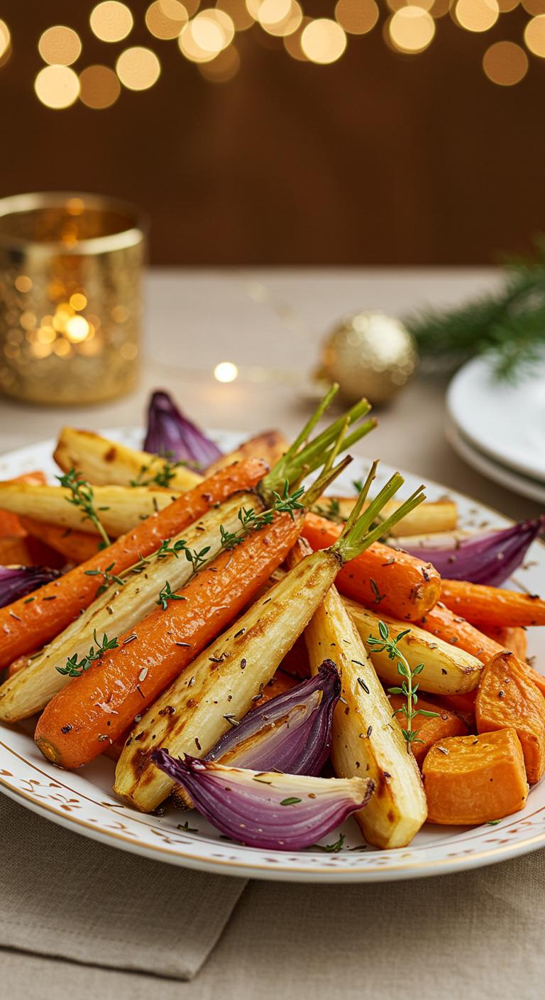 Roasted Root Vegetables With Fresh Thyme — warm, caramelized, and perfectly herby for any holiday spread.