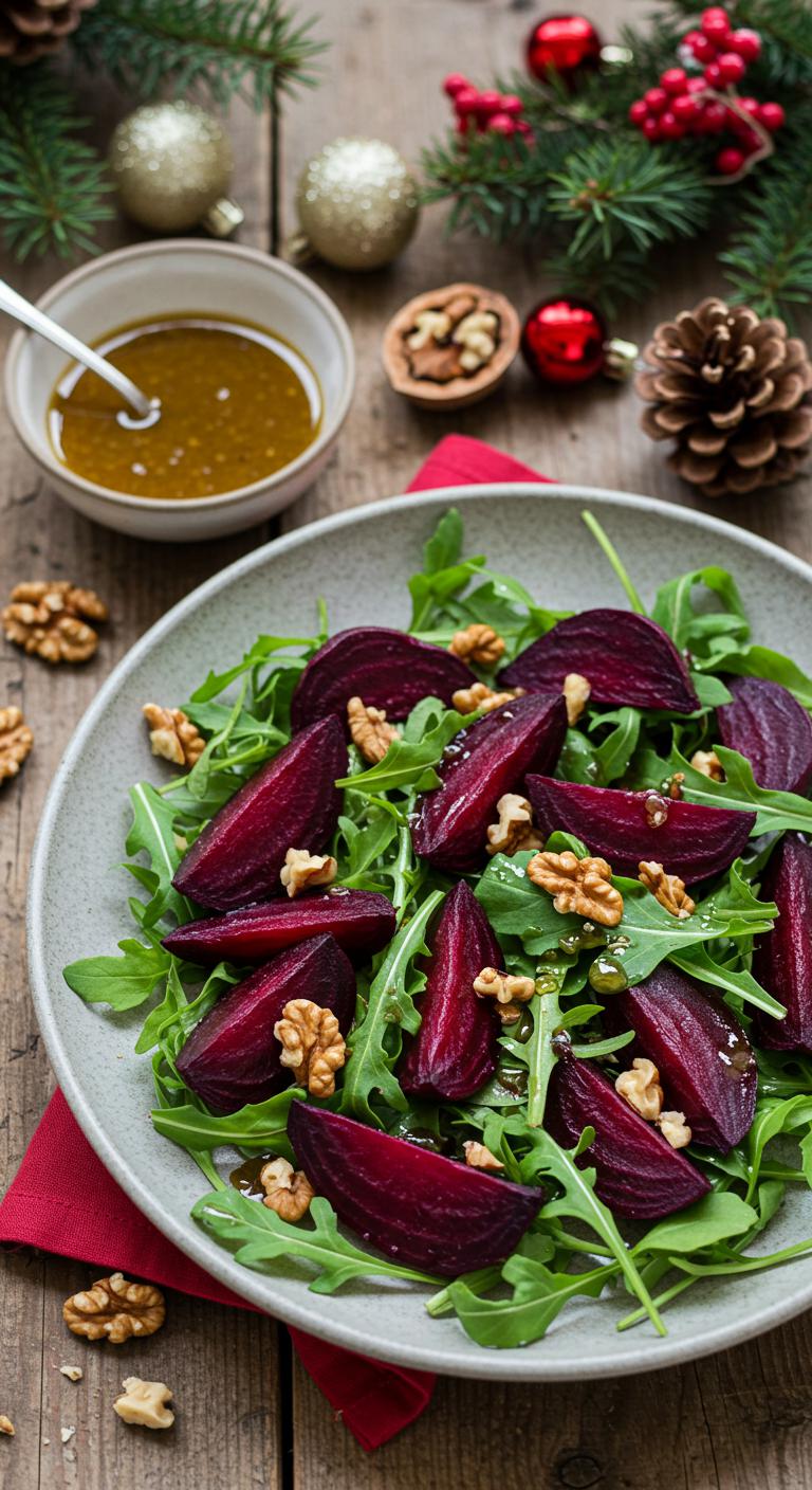 Earthy roasted beets meet peppery arugula and a zippy walnut vinaigrette—bright, hearty, and perfect for holiday tables.