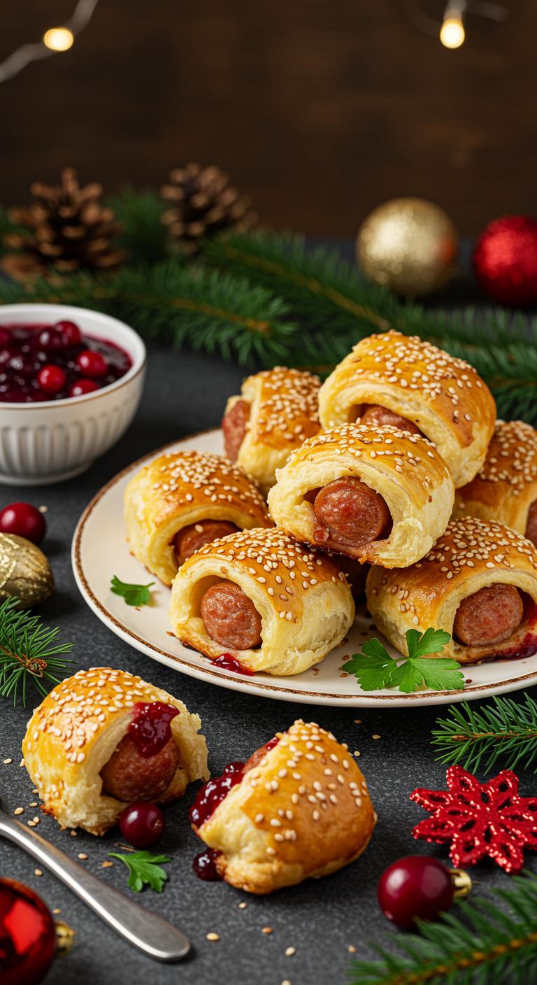 - Spoon a thin line of cranberry mixture down the center of each pastry rectangle, then top with a portion of the cooked sausage meat, pressing lightly to form a log.