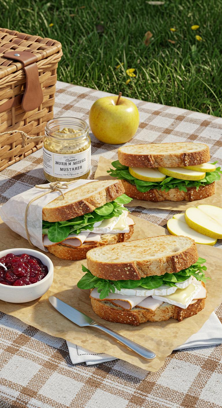 Savory roast turkey and melty brie come together in a picnic-ready sandwich that’s elegant yet easy to pack.